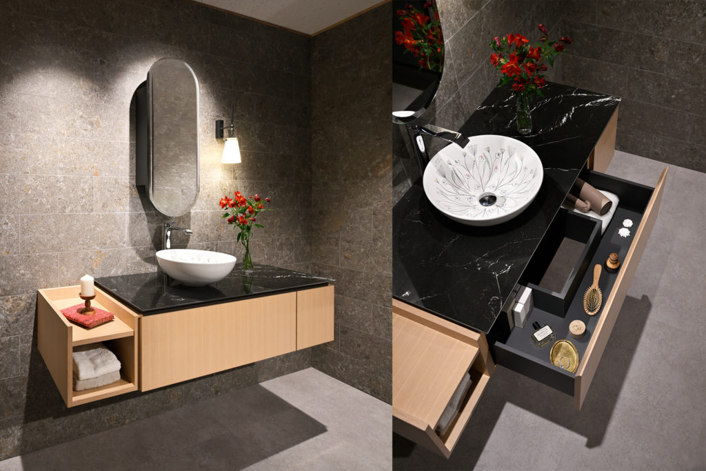 BAGNO NUOVOは、2002年に吉本産業株式会社が手掛けた「Domani」から始まる洗面化粧台事業の歩みを受け継ぎ、長年にわたる素材研究と空間づくりの経験を通して生まれた新たなバスルームファニチャーの事業です。