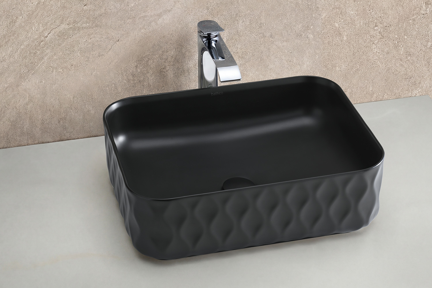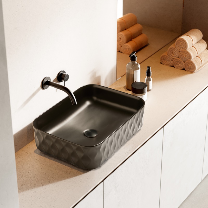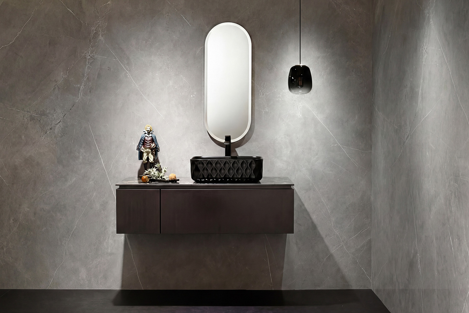 まるで彫刻作品のような印象を演出。落ち着いた色調ながら、