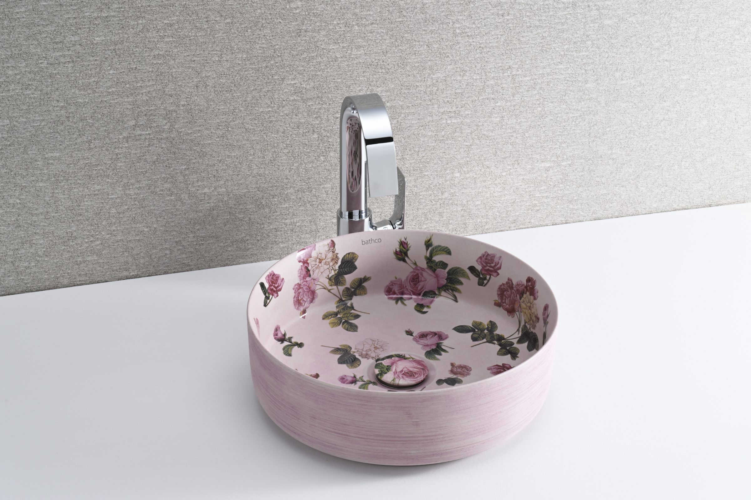 洗面空間に華やぎとロマンティックな詩情を添えます。外側には繊細な刷毛目調のテクスチャが施され、